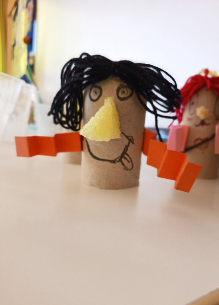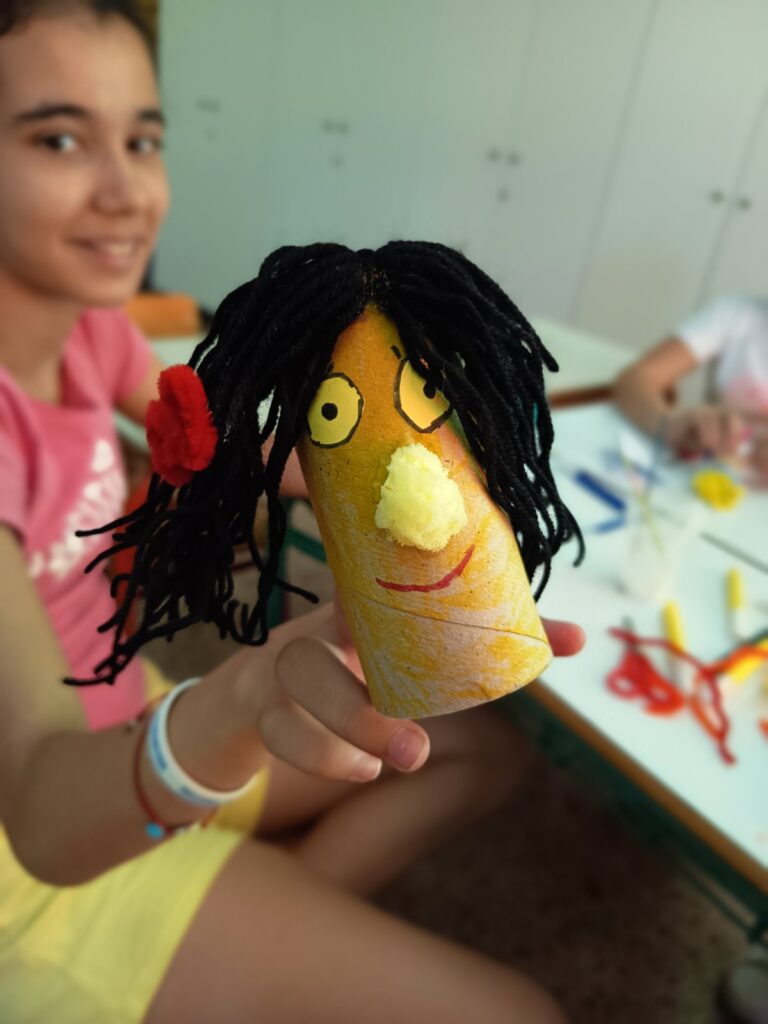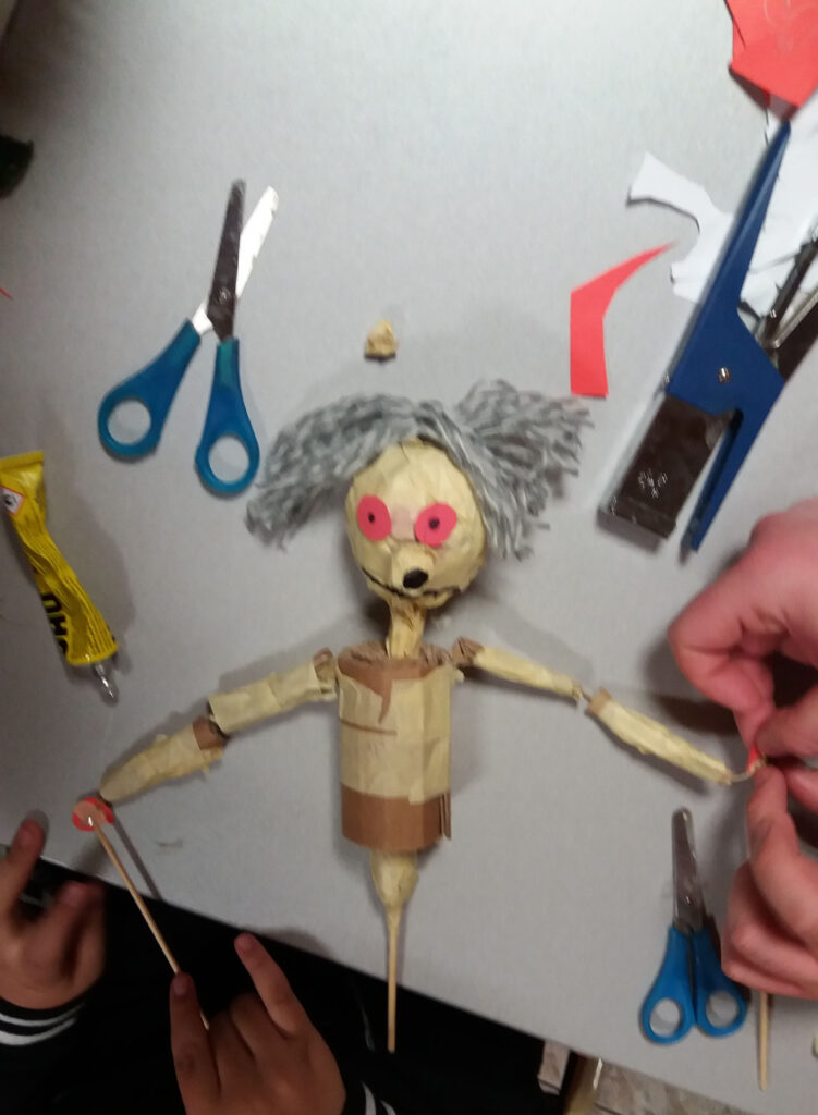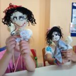 Κάθε παιδί θα δοκιμάζει να ζωντανέψει χρηστικά αντικείμενα αλλά και να γνωρίσει και να πειραματιστεί με διάφορα υλικά. Θα φτιάχνει δικές του κούκλες με ανακυκλώσιμα υλικά αλλά και με χαρτοπολτό, ύφασμα, ξύλο κ.α. Φαντασία, κέφι, αυτοσχεδιασμοί και συνεργασία θα δίνουν ζωή στις κούκλες που θα χορεύουν, τραγουδούν και λένε ιστορίες πάνω στην κουκλοσκηνή!